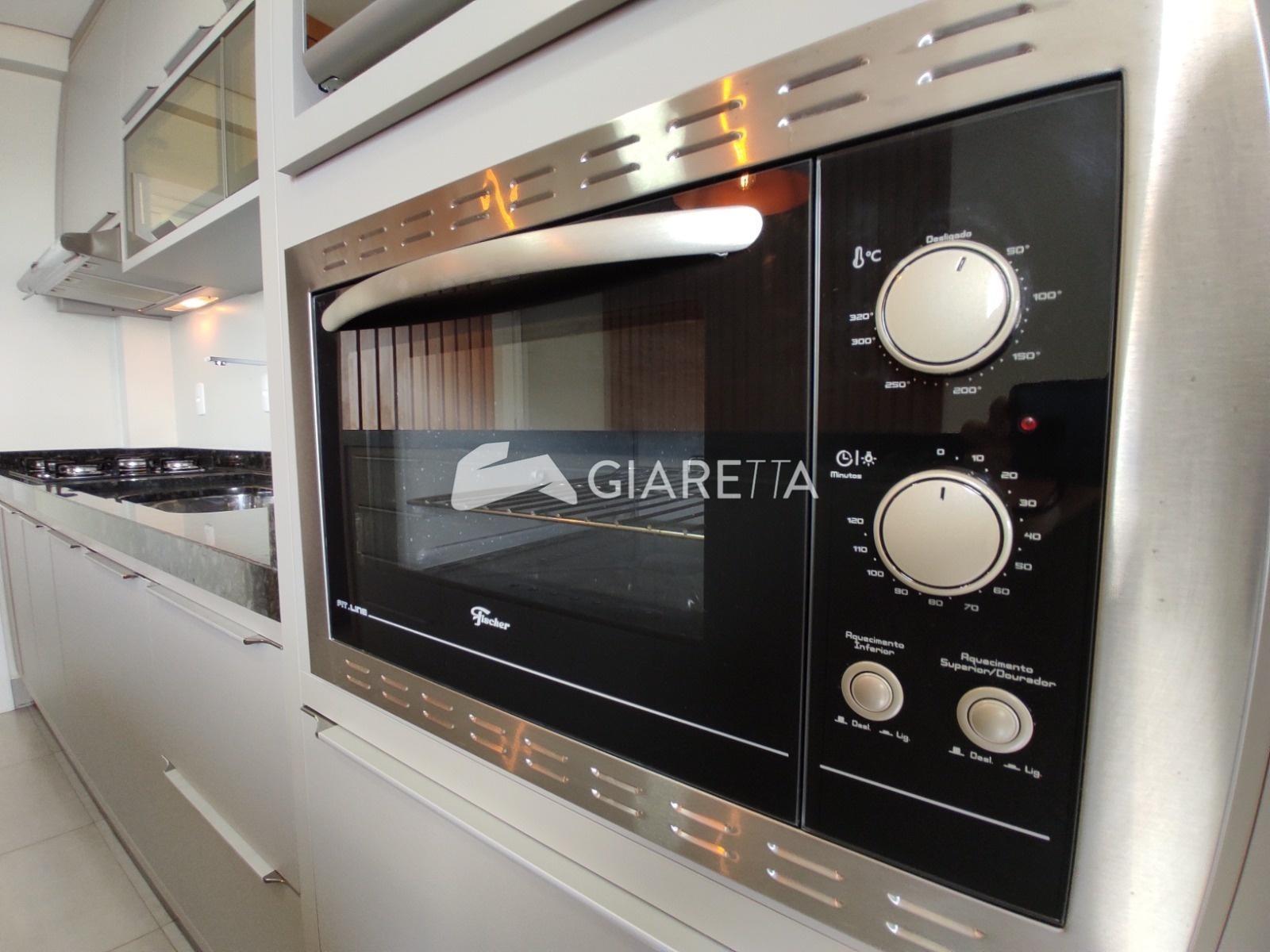 - Sacada gourmet com churrasqueira e pia (armários sob medida), mesa com 04 cadeiras, fechada com vidros e integrada ao apartamento