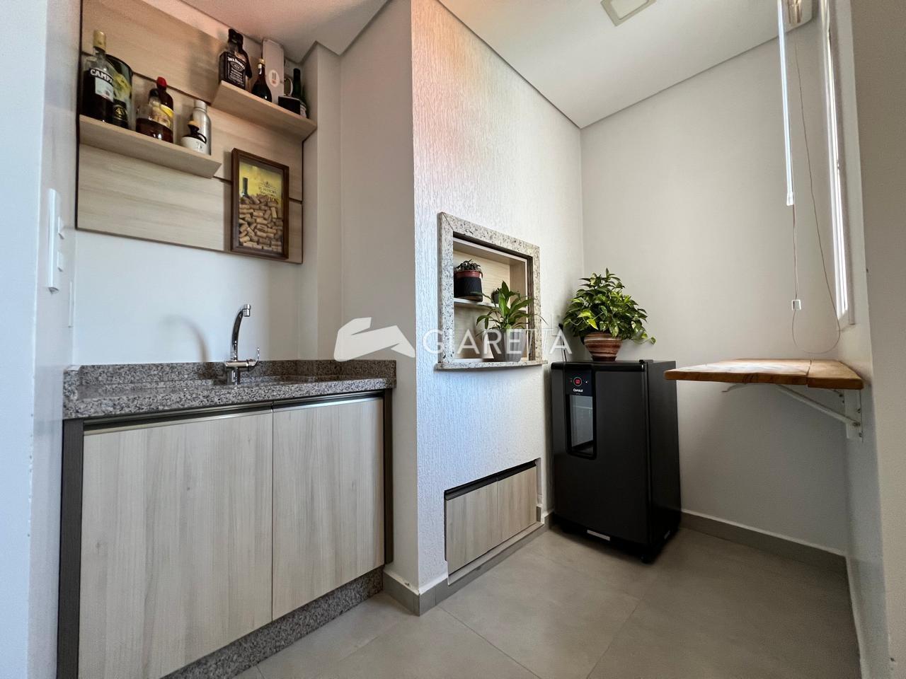 - Cozinha planejada com geladeira, microondas, forno elétrico, sugar, cooktop, e aquecedor a gás