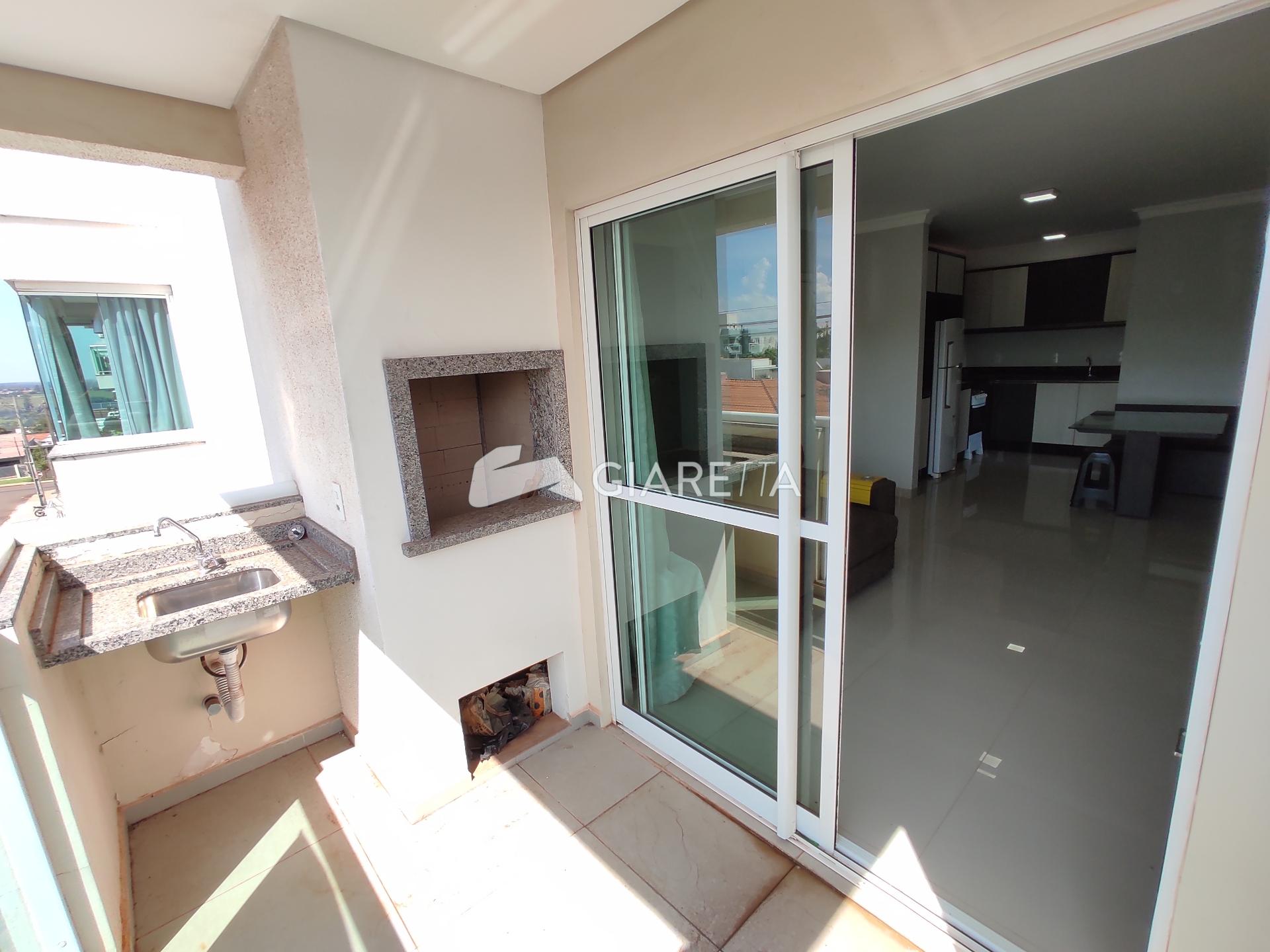 - Sacada com churrasqueira e pia, sol da manhã, e uma vista agradável do bairro