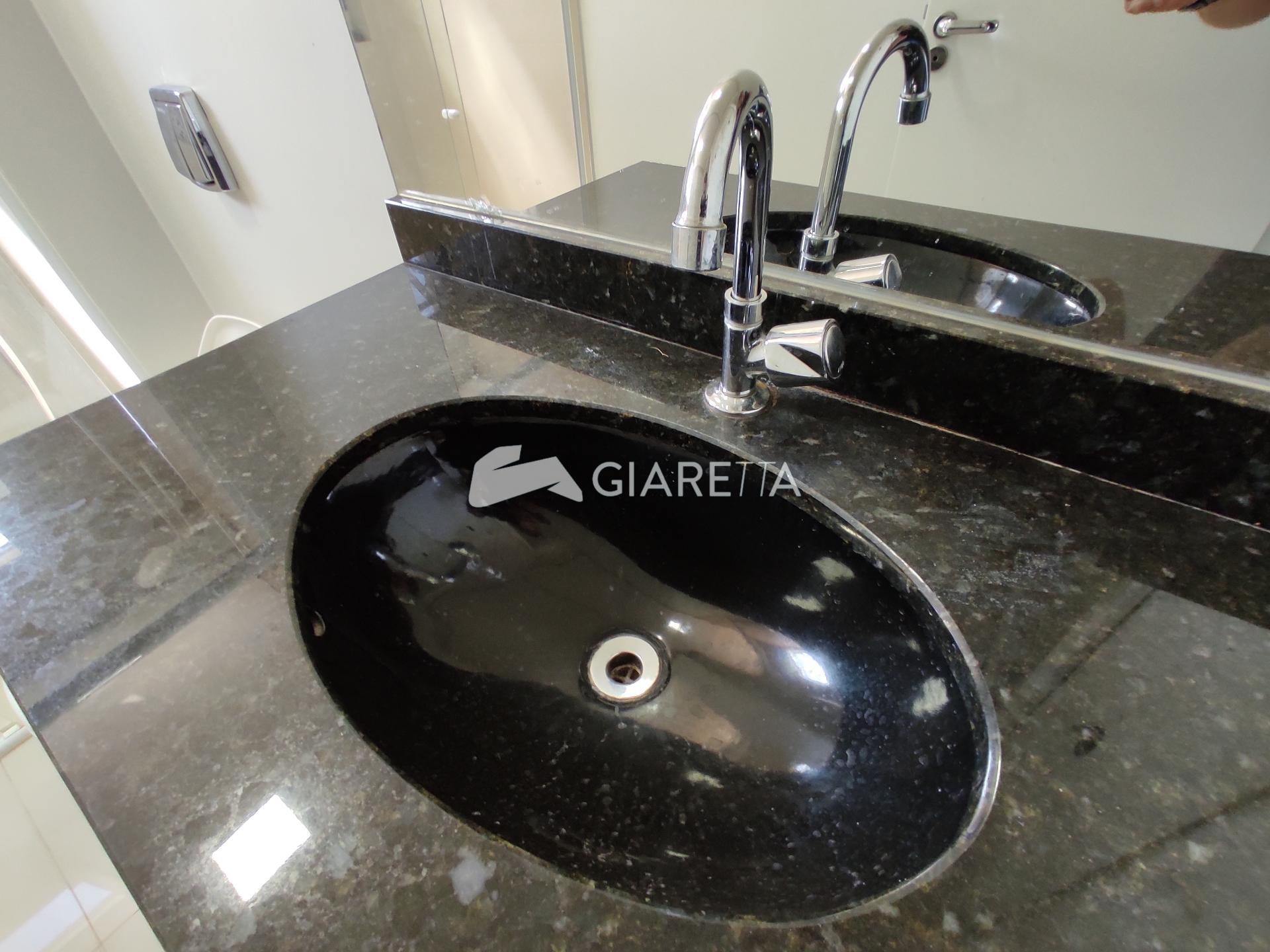 - 02 Banheiros - Banheiro social e da suíte com pia sob medida, box em vidro temperado e chuveiro