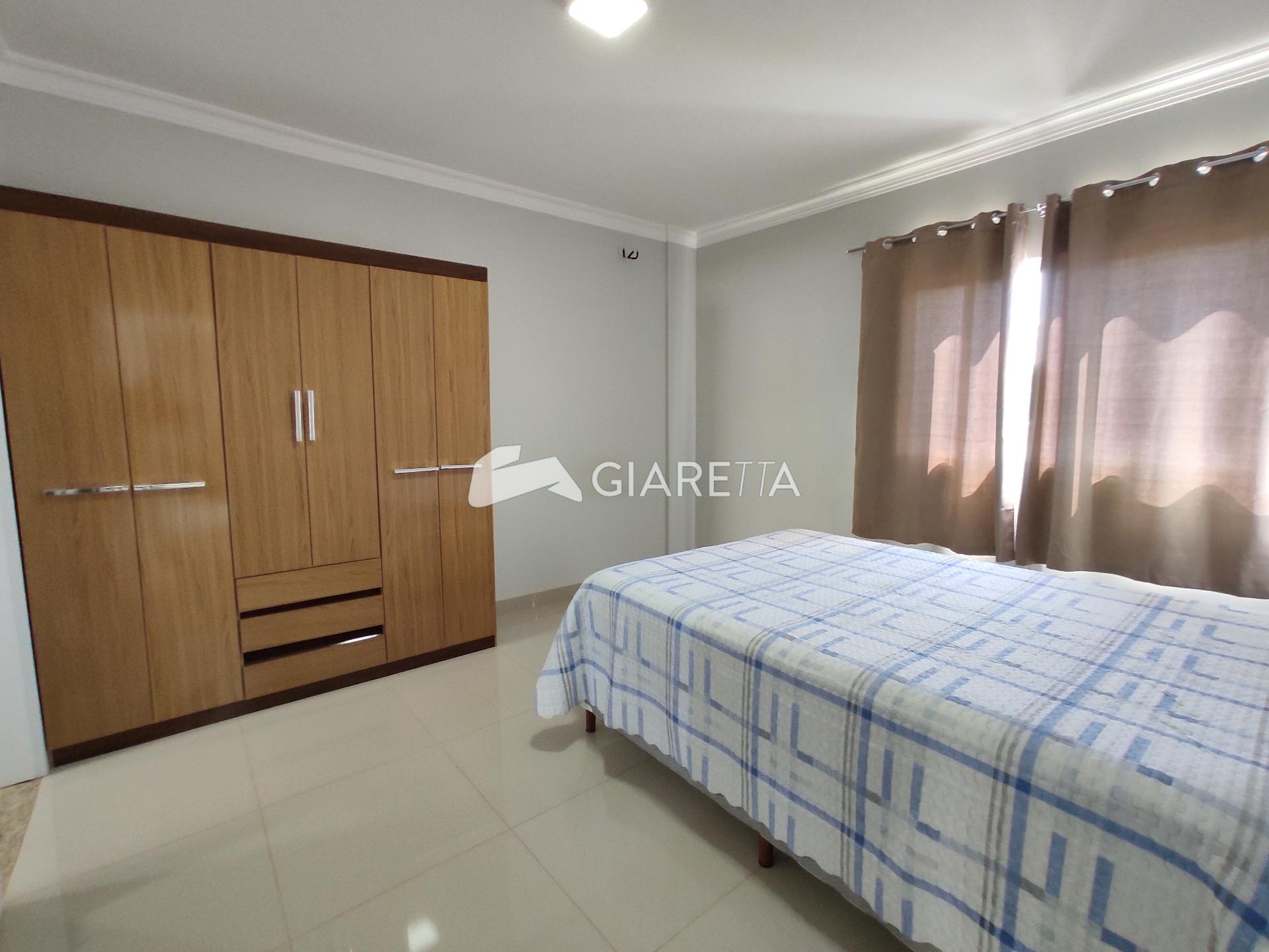 - 01 Suíte com cama e guarda roupas, cortina, banheiro com pia sob medida, box e chuveiro